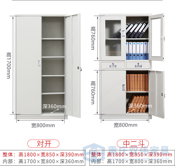 下節(jié)并列2抽屜(雙壁前面板,配PVC內(nèi)嵌扣手/轉(zhuǎn)舌鎖,抽屜側(cè)板配尼龍腳輪)+對(duì)開門(配PVC內(nèi)嵌扣手/轉(zhuǎn)舌鎖,門背焊接全長加強(qiáng)筋);