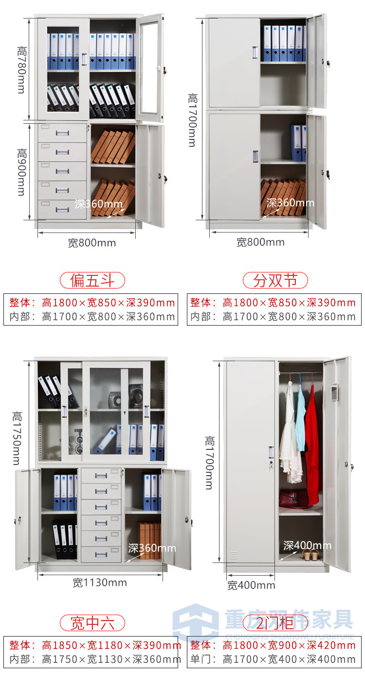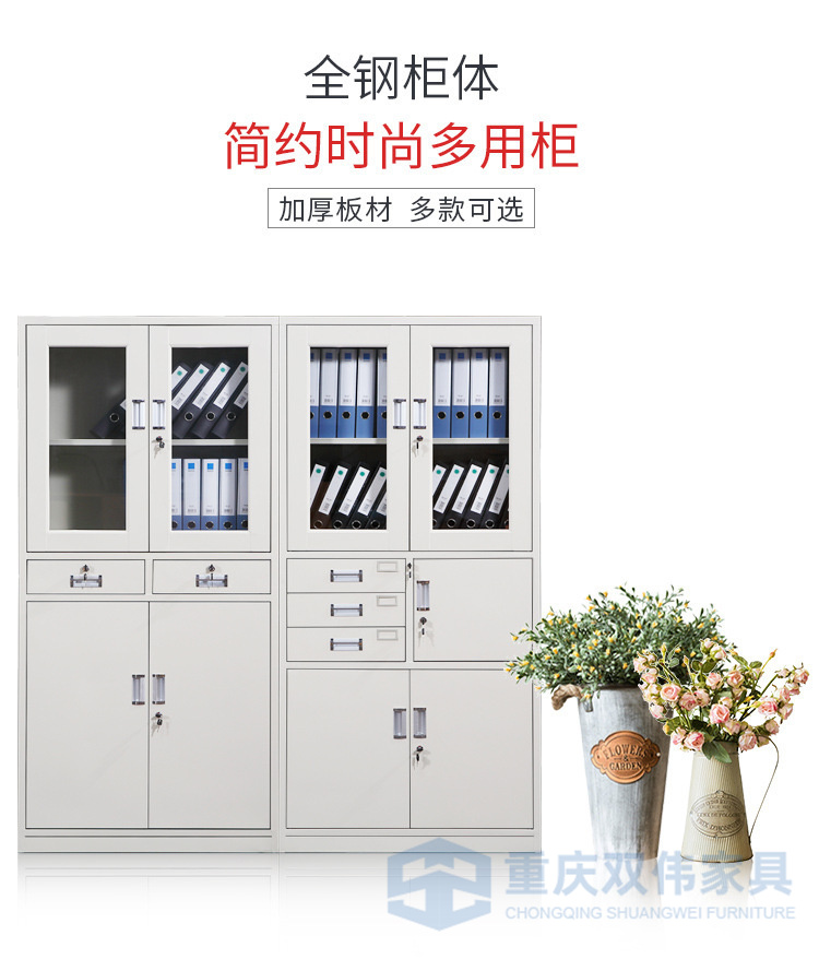 下節(jié)并列2抽屜+1全寬抽屜(雙壁前面板,配PVC內(nèi)嵌扣手/轉(zhuǎn)舌鎖,抽屜側(cè)板配尼龍腳輪)+對開門(配PVC內(nèi)嵌扣手/轉(zhuǎn)舌鎖/號插,門背焊接全長加強筋);