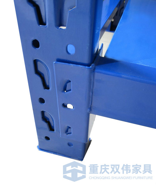 該高度的貨架無需梯子,您即可快速且輕易地使用最高處的存放位置。標(biāo)準(zhǔn)立柱沖雙排(2*40)調(diào)節(jié)孔,中心距50mm,可自行確定隔板的位置。增加隔板時(shí),請(qǐng)注意:每根橫梁占用3個(gè)調(diào)節(jié)孔。